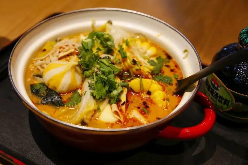 首先,麻辣燙被做了本土改造, 融入骨湯來代替紅湯,降低辣度和油膩,還加入了北方人獨(dú)愛的靈魂麻醬,麻醬帶來的熱量非常適合寒冷的北方補(bǔ)充能量。