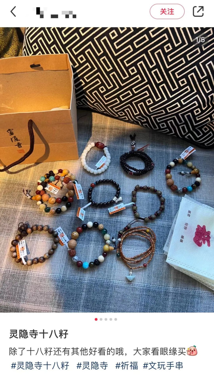 杭州靈隱寺與杭州文旅IP“西子貓貓”合作,創(chuàng)立同名文創(chuàng)品牌“西子貓貓”。后者將靈隱寺形象與西子貓貓IP結(jié)合,并在寺里開設(shè)線下店鋪,出售菩提手串、雪糕等文創(chuàng)衍生品。當(dāng)中爆款菩提手串被年輕人視為“精神庇護(hù)神器”遭哄搶。