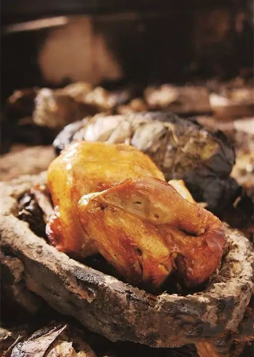 此菜在烤制時(shí)雞肚內(nèi)加入了皮凍拌勻的餡料,隨著烤制溫度的慢慢的升高,里面的汁水透過(guò)網(wǎng)油、荷葉溢出來(lái)。制作好的雞口感鮮嫩,色澤金黃,點(diǎn)一份叫花雞,用筷子輕輕的撥開(kāi)荷葉,打開(kāi)的那一刻荷香滿堂,雞酥爛脫骨入口唇齒留香,回味無(wú)窮。