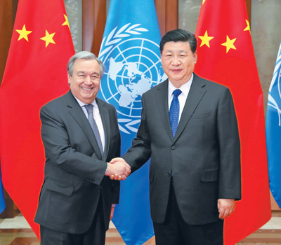 4月8日,國家主席習(xí)近平在北京人民大會堂會見聯(lián)合國秘書長古特雷斯。 |