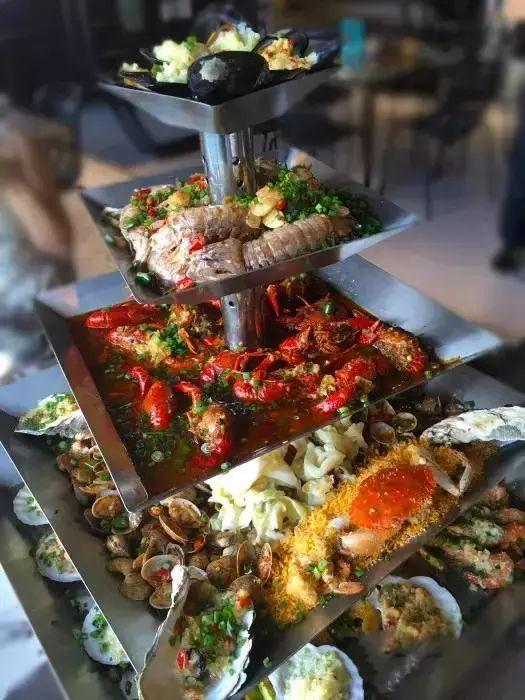 小龍蝦塔將海鮮從上至下,累積了足足四層。當(dāng)各式各樣的海鮮聚集在一起時(shí),光是看一眼就足以讓人流口水。