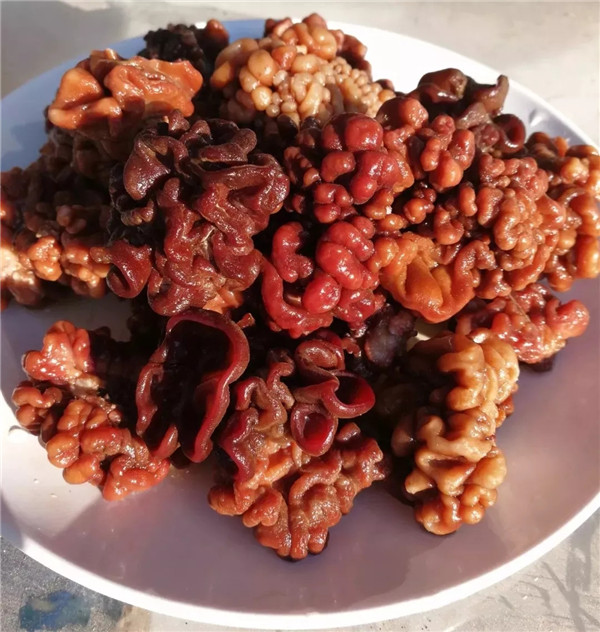 色澤棕紅,外形與核桃相似,其肉質(zhì)肥厚、口感爽脆。市場上的干貨售價約130元/斤,通常,1斤干貨可泡發(fā)成10斤。