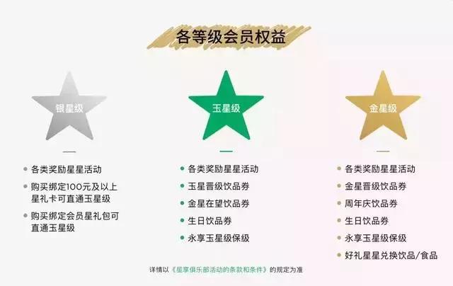 會(huì)員的本質(zhì)是讓用戶有目標(biāo)的買買買,要讓用戶從很隨性的買買買,變成很有使命感的買買買,這個(gè)關(guān)鍵就在于會(huì)員等級(jí)的設(shè)計(jì),星巴克的會(huì)員就有3個(gè)等級(jí),銀星級(jí)會(huì)員、玉星級(jí)會(huì)員和金星級(jí)會(huì)員。