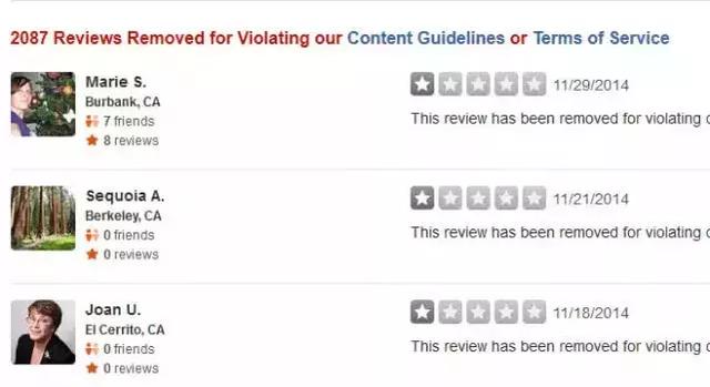 而Yelp,也確實如他所言,一直在刪除他的評論……
