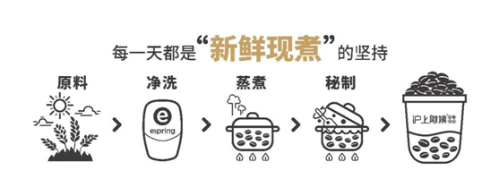 了解滬上阿姨的人都知道,從品牌創(chuàng)立之初,滬上阿姨就確定了“現(xiàn)煮茶飲”的定位,所有的原料都必須每天 “新鮮現(xiàn)煮”。