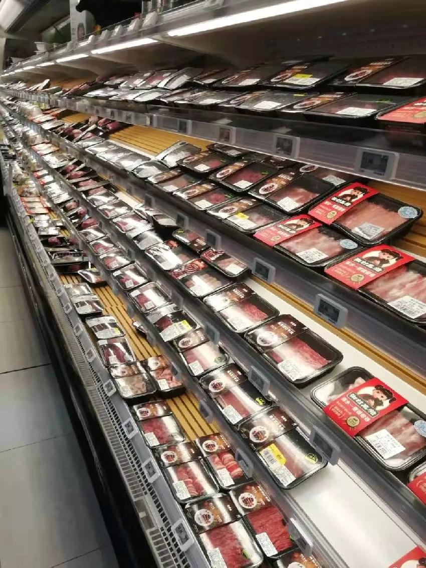 天河區(qū)的盒馬鮮生廣武店貨架上的肉品