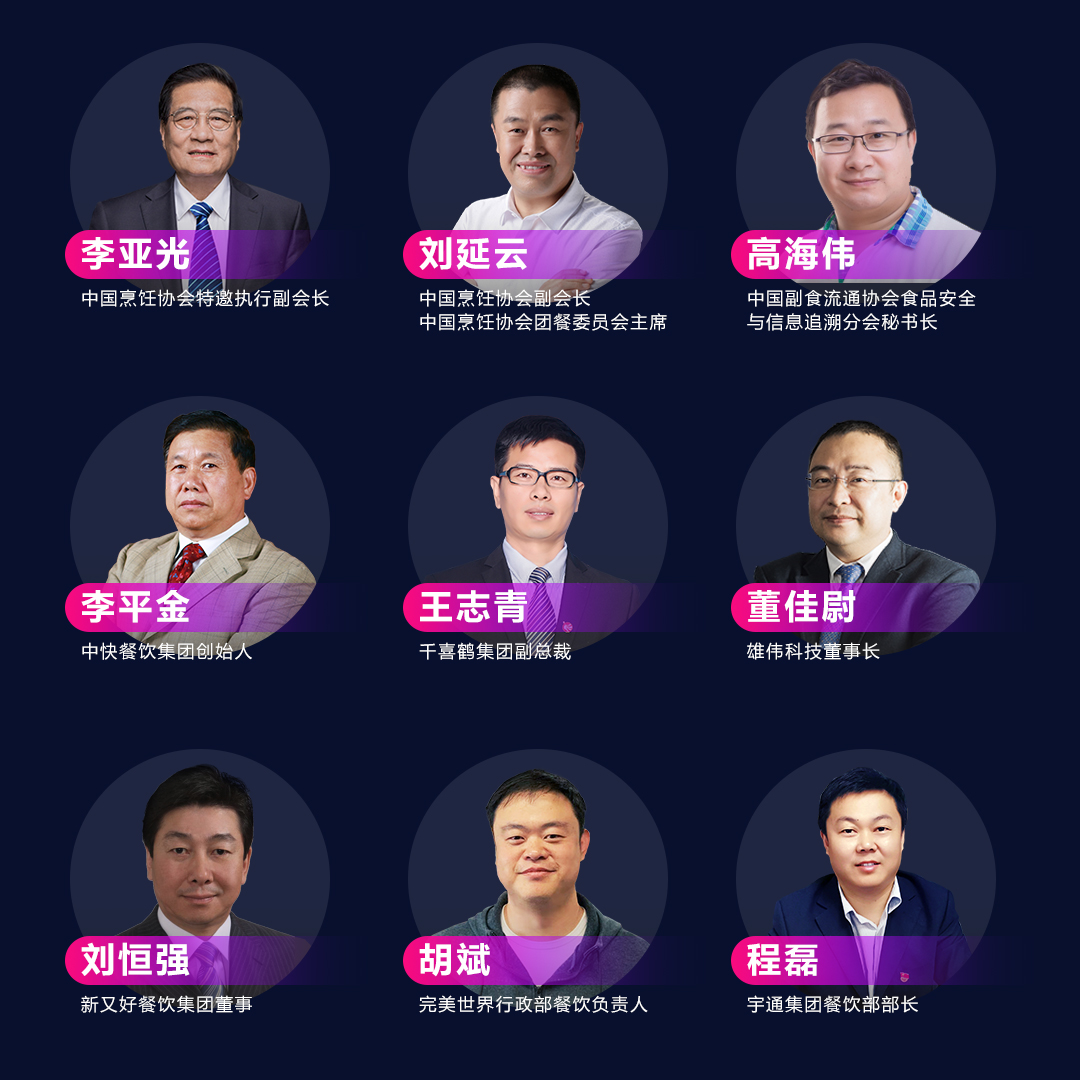 據(jù)了解,本次峰會(huì)的演講嘉賓可謂“大佬”云集。他們中有中國烹飪協(xié)會(huì)特邀執(zhí)行副會(huì)長李亞光,中國烹飪協(xié)會(huì)副會(huì)長、中國烹飪協(xié)會(huì)團(tuán)餐委員會(huì)主席劉延云,中國副食流通協(xié)會(huì)食品安全與信息追溯分會(huì)秘書長高海偉等行業(yè)專家;也有中國團(tuán)餐第一品牌、經(jīng)營著2000多家餐飲中心的千喜鶴集團(tuán)副總裁王志青,還有中國高校團(tuán)餐標(biāo)準(zhǔn)的制定者中快餐飲創(chuàng)始人李平金,以及每天服務(wù)50萬團(tuán)餐消費(fèi)者的新又好餐飲集團(tuán)董事劉恒強(qiáng)等國內(nèi)團(tuán)餐頭部企業(yè)的創(chuàng)始人和高管。
