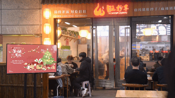 年輕顧客是最具傳播主動(dòng)性的群體,餐廳可以替換上本次最新上線的“圣誕”系列模板,通過動(dòng)態(tài)畫面的呈現(xiàn),不僅能夠擁有更佳的視覺體驗(yàn),并且能夠配合各種營銷活動(dòng),即使更改了主題,同樣也可以找到配套的菜單模板,放上套餐菜品的圖片和信息,讓原本普通的店外屏幕,成為最好的宣傳位。