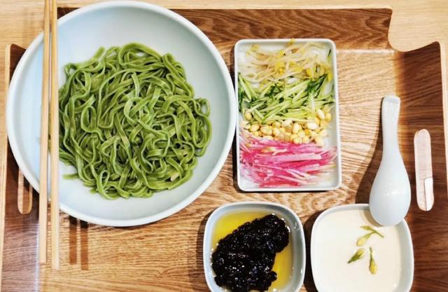一字型的動線設(shè)計,顧客依次按照“自取餐盤——自選小菜飲品——選擇面條澆頭——自助結(jié)賬”四個步驟來點餐。