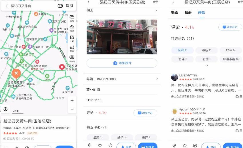 云南芒市強(qiáng)記刀叉牛肉,最開(kāi)始做百度地圖是為了方便加盟商導(dǎo)航,隨著越來(lái)越多外地旅游顧客的光顧,地圖引流被強(qiáng)記重視起來(lái)。強(qiáng)萬(wàn)成說(shuō),“芒市是旅游城市,外地游客會(huì)通過(guò)地圖發(fā)現(xiàn)我們,況且去地圖上標(biāo)注門(mén)店又不收費(fèi),何樂(lè)而不為!”