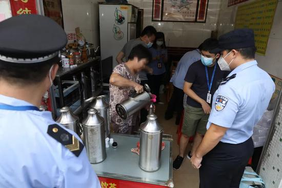 由于食品安全問題關(guān)系重大,辦案民警立即針對(duì)番禺區(qū)內(nèi)涼茶鋪進(jìn)行隨機(jī)抽樣調(diào)查。經(jīng)有關(guān)部門部分檢測(cè),40份送檢樣品中,有15份不同程度含有西藥“對(duì)乙酰氨基酚”“氯苯那敏”“布洛芬”“馬來酸氯苯那敏”“甲硝唑”等成分,不符合國(guó)家食品安全法規(guī)定 。