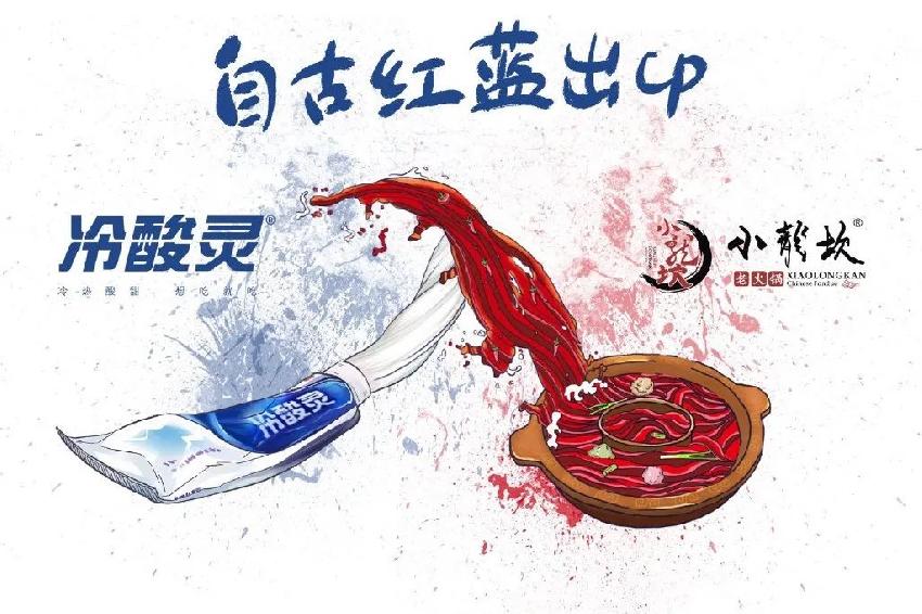 小龍坎X冷酸靈通過(guò)打造牙膏和火鍋的神仙組合,突破美食和日化用品之間的邊界。借助紅藍(lán)搭配話題強(qiáng)化雙方的CP感,營(yíng)造跨界的毫無(wú)違和感效果,提高大家對(duì)于聯(lián)名現(xiàn)象的接受程度。