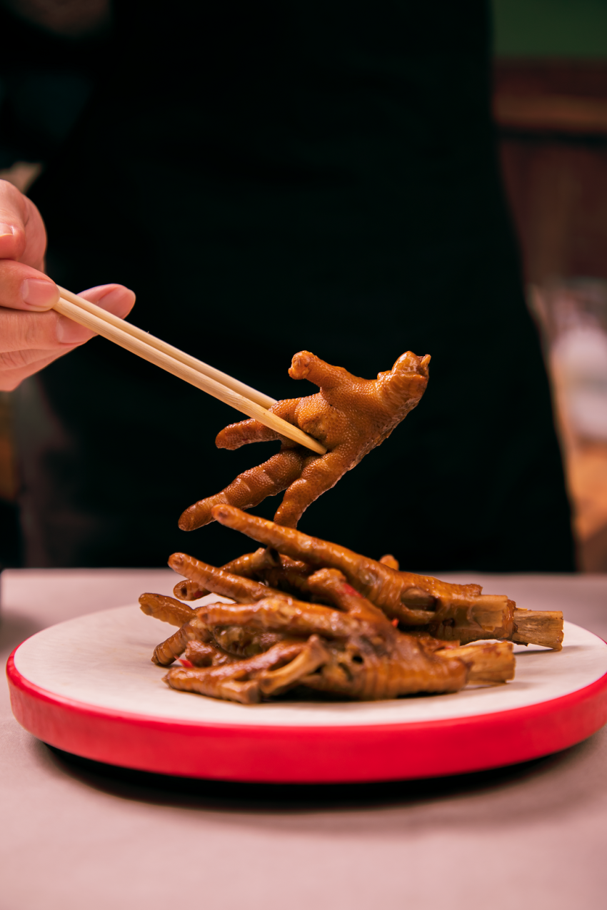 鳳爪作為我國傳統(tǒng)小吃,具有廣泛的消費基礎(chǔ),各地都有不同風(fēng)味的鳳爪,比如廣式早茶里的豉汁鳳爪、云南特色小吃舂雞腳、川渝傳統(tǒng)小吃泡椒鳳爪等。與此同時,油炸、鹵制、紅燒后的鳳爪,在火鍋湯底內(nèi)涮煮后更加入味,口感也更為鮮香軟糯,鳳爪也因此進入了火鍋場景。
