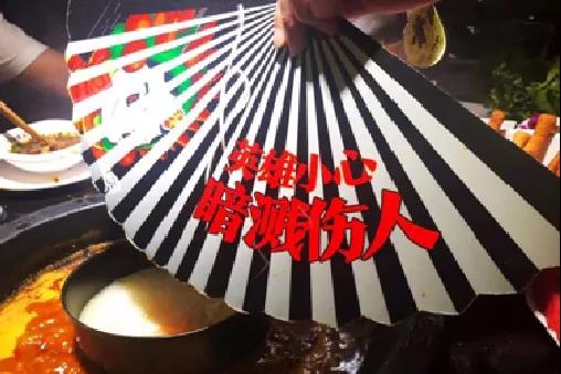 扇子上面的俏皮語言立現(xiàn),顧客一看“英雄小心,
