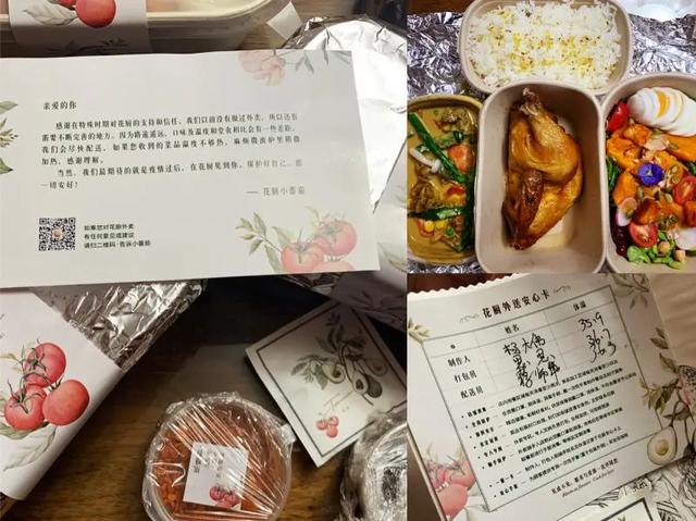 同時,每份外賣都放入“安心卡”,上面有制作人、打包員和配送員的簽名和體溫數(shù)值。