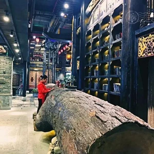 來說說前臺這根巨型木頭,是5噸重的金桔木,據(jù)說是花費幾十萬大手筆打造而成,寓意“厚德載物”,整個木頭貫穿前廳,大氣磅礴。