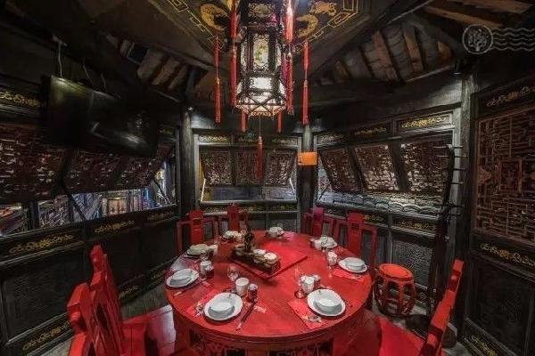 店里還有風(fēng)格各異的包間,朱紅色的桌椅板凳很是醒目,在瓊樓玉宇的環(huán)境里渲染了一種文化態(tài)度。值得一提的是,店里的神龍擺尾包間需要提前預(yù)定,因為可以俯瞰整個寬窄巷子,所以一席難求!