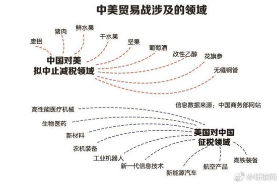 回到這一次的貿(mào)易戰(zhàn),昨天,一張中美制裁領(lǐng)域的對(duì)比圖火了。