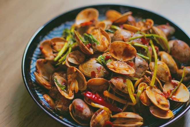 1.焯花甲時不要過久,這一步只是為了讓花甲開口,后面炒時就不會炒出很多水,所以最好是剛一開口就撈出來,煮久則老。