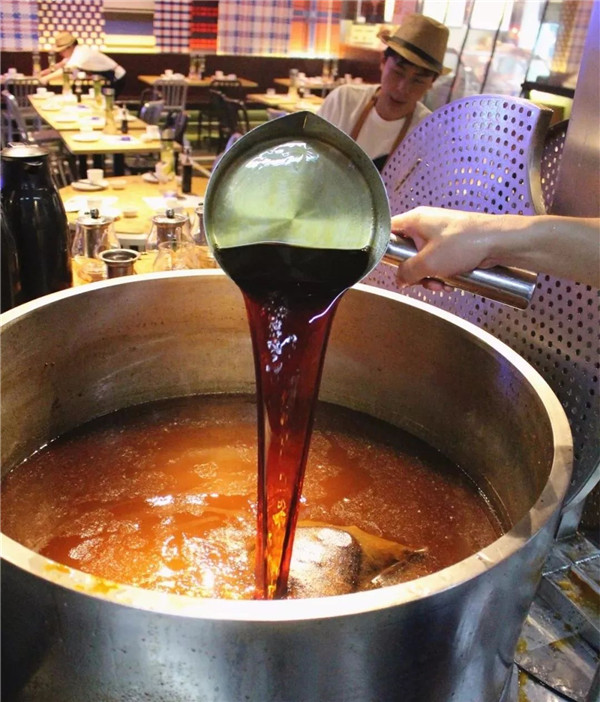 3、鍋內(nèi)原湯清掉料渣,浸潤一夜即成初始鹵水。